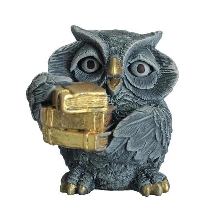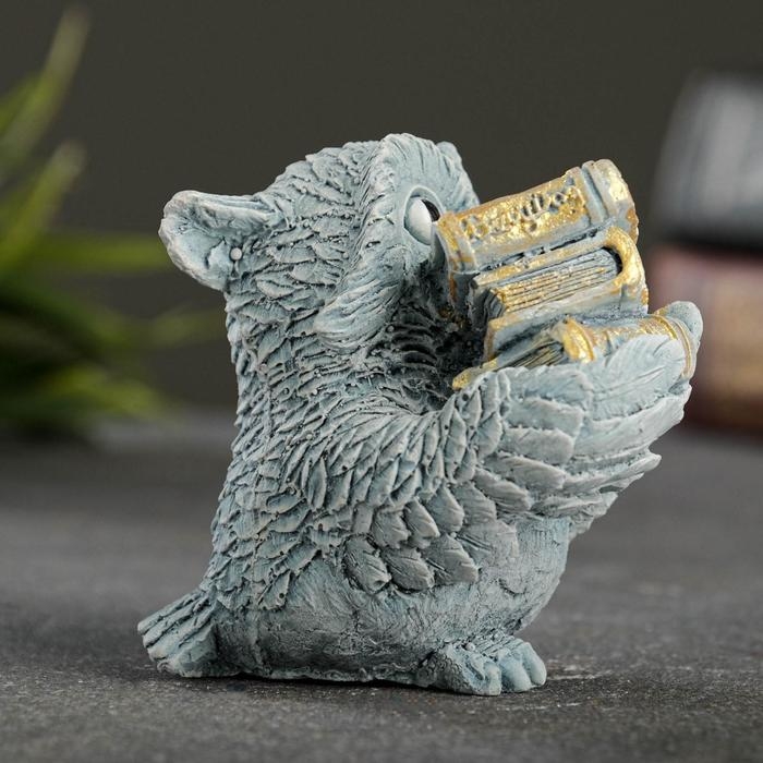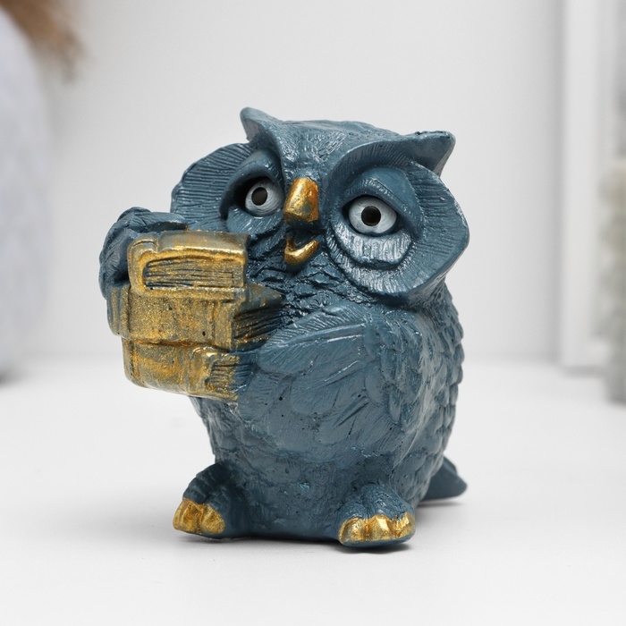 Фигура "Сова с книгами" серо-голубой 10х6х6см