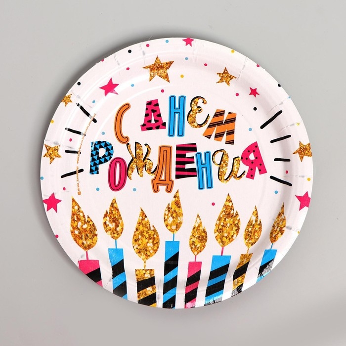 Представьте себе праздничный стол, украшенный яркой посудой с праздничным декором! Весь набор выполнен в красочном дизайне с изображением свечей, звезд и надписью "С днем рождения". Тарелки и стаканчики изготовлены из плотного картона, что гарантирует их прочность. После праздника вы просто выбросите ее, не тратя время на мытье. Этот набор идеально подойдет для праздничного застолья на день рождения, ведь он создаст атмосферу радости и веселья. Набор упакован в удобный пакет, что делает его идеальным вариантом для подарка.