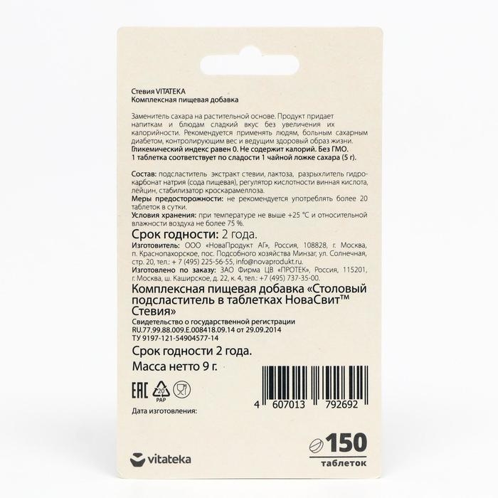 Заменитель сахара на растительной основе. Продукт придает напиткам и блюдам сладкий вкус без увеличения их калорийности, Рекомендуется применять людям, больным сахарным диабетом, контролирующим вес и ведущим здоровый образ жизни. Гликемический индекс равен 0. Не содержит калорий. Без ГМО. 1 таблетка соответствует по сладости 1 чайной ложке сахара (5 г).