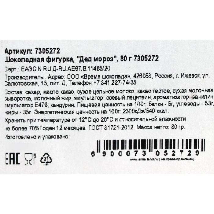 Шоколадная фигурка "Дед мороз", 80 г