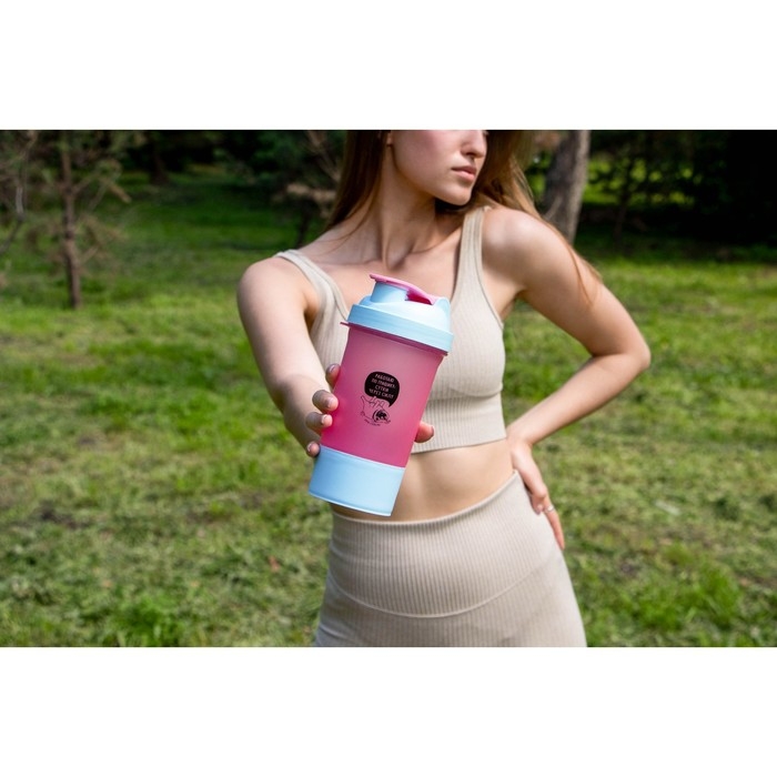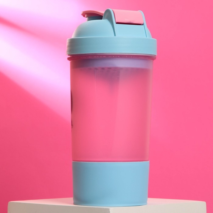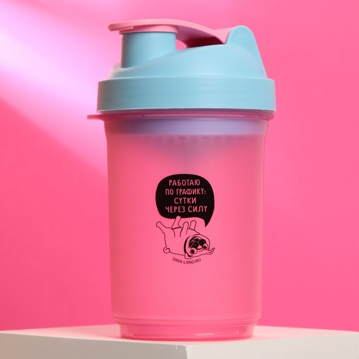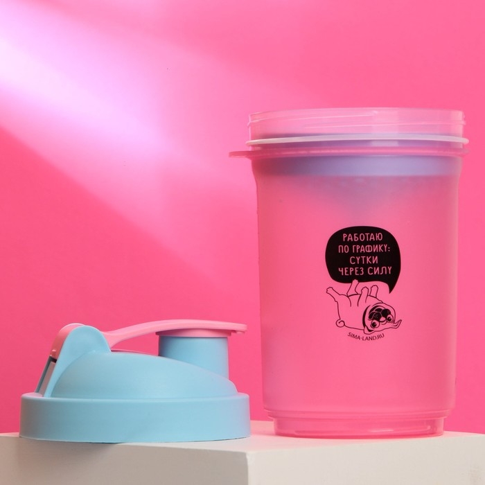 Шейкер спортивный «Работаю по графику», розово-голубой, с чашей под протеин, 500 мл