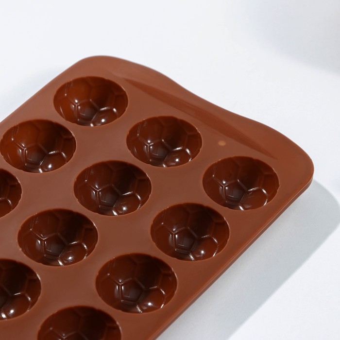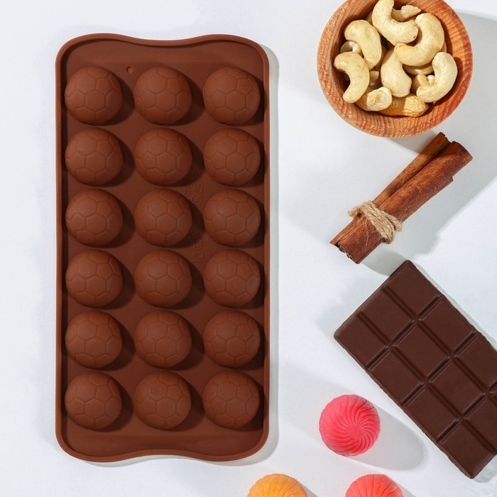 Форма для конфет и шоколада Доляна «Мячики», силикон, 21×10,5×1,5 см, 18 ячеек, цвет коричневый