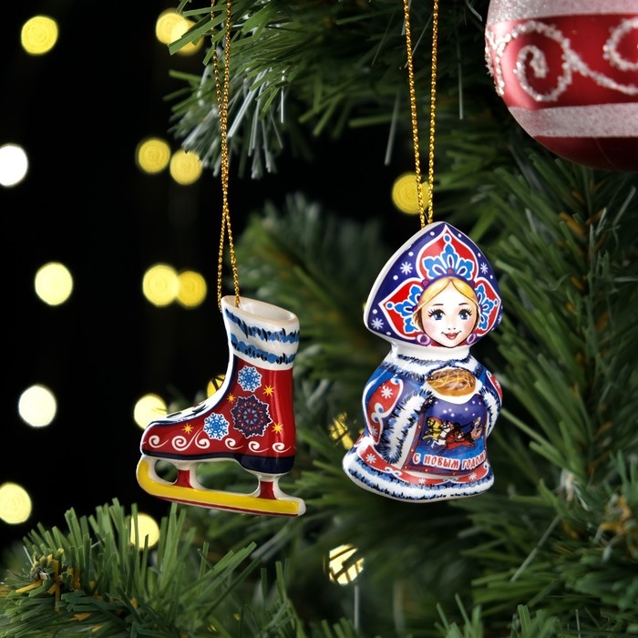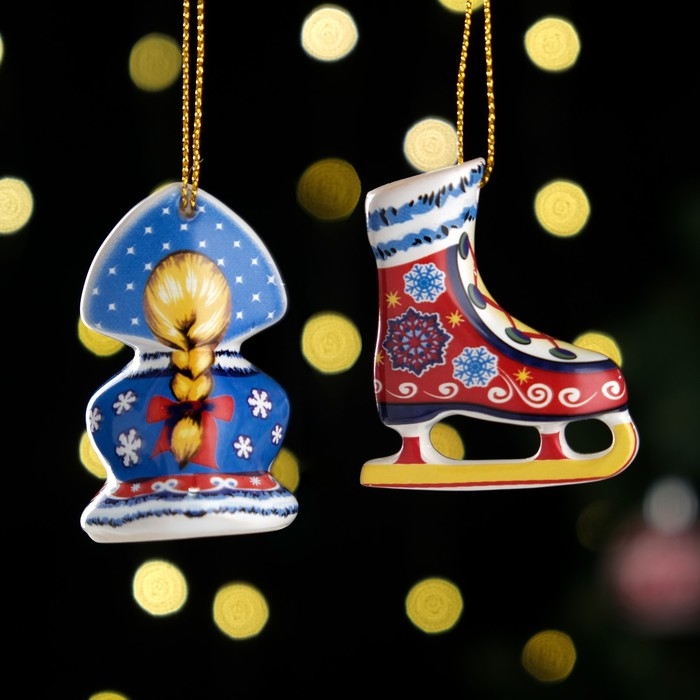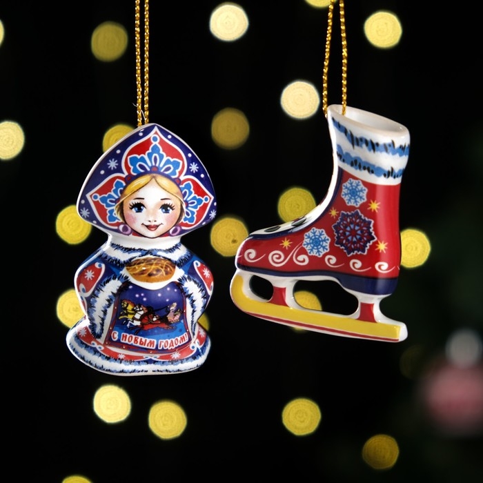 Набор ёлочных игрушек "Снегурочка и конек", 6 см