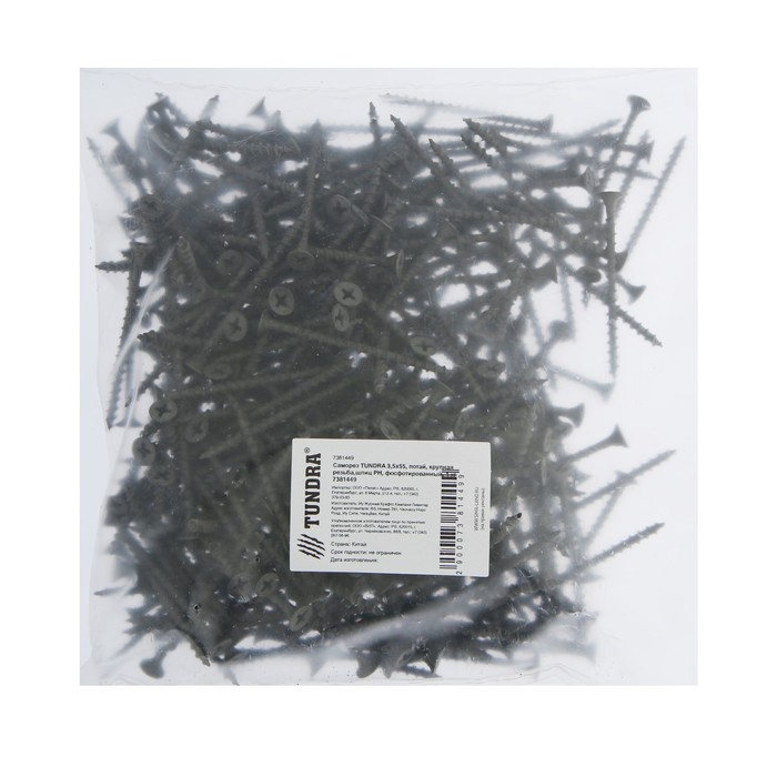 Саморез 3.5х55 мм ТУНДРА PREMIUM, потай, крупная резьба, шлиц PH, фосфатированный, 1 кг