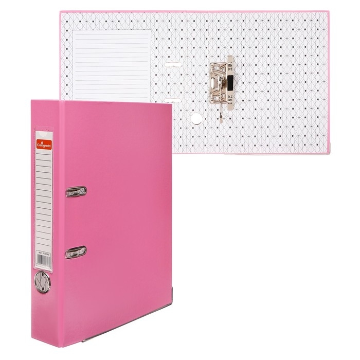Папка-регистратор А4, 50 мм, Calligrata, ПВХ, тиснение "лен", металлическая окантовка, карман на корешок, собранная, розовая, микс