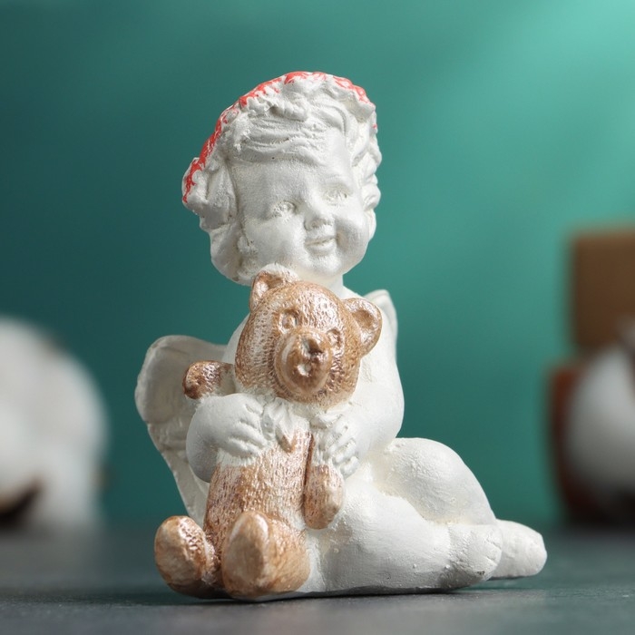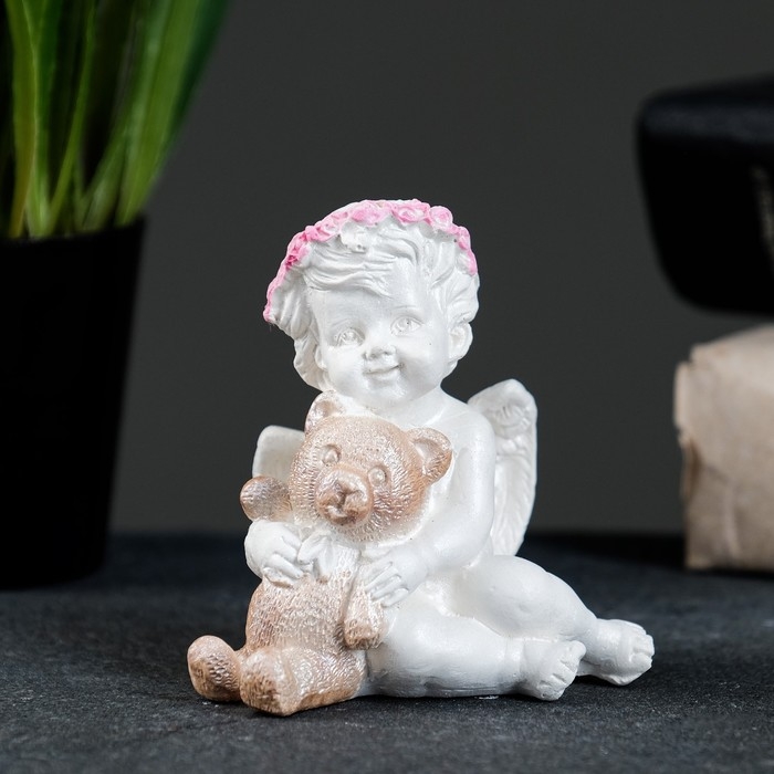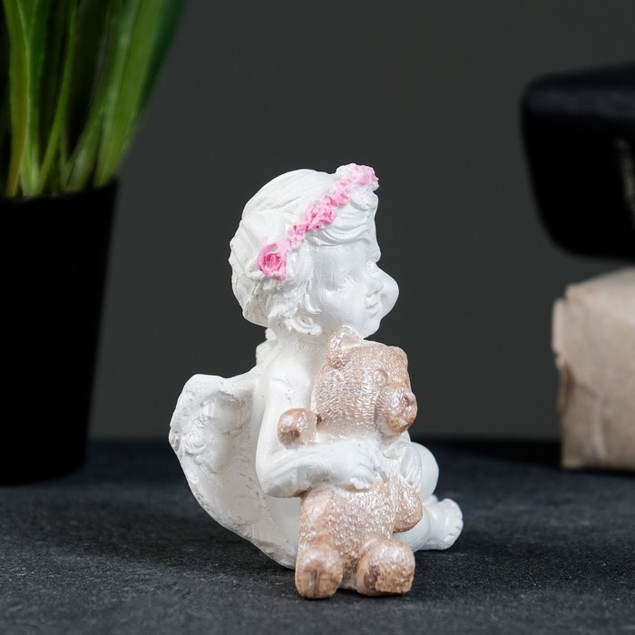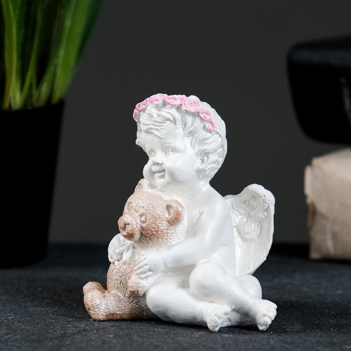 Фигура "Ангелочек с мишкой сидит" перламутр, 7х7х5см
