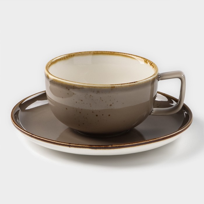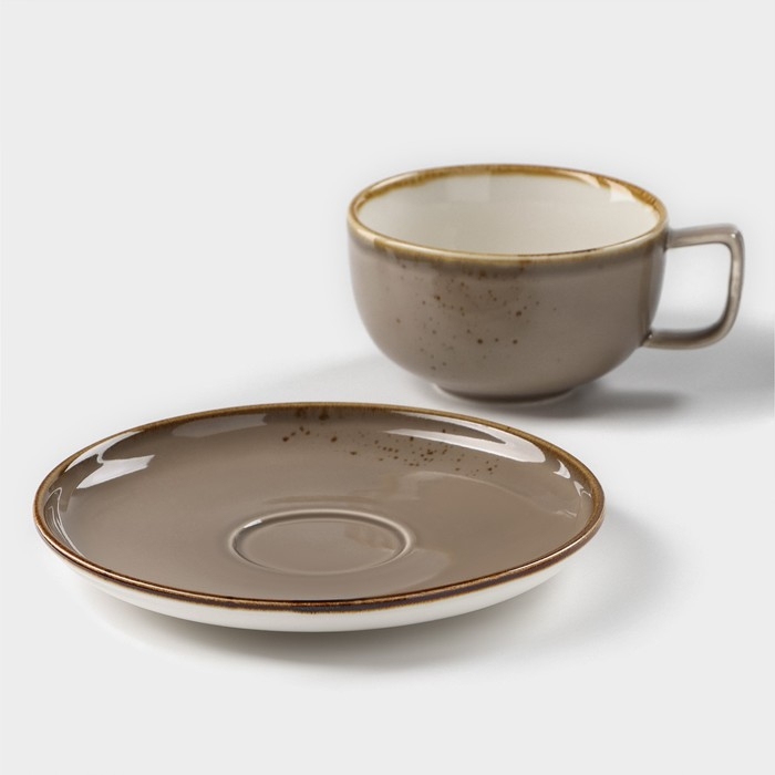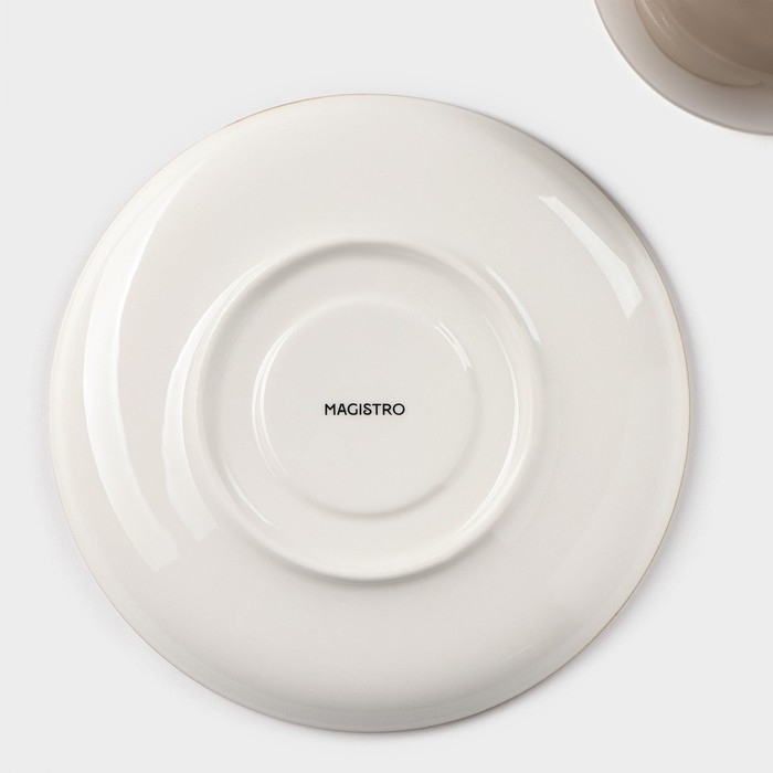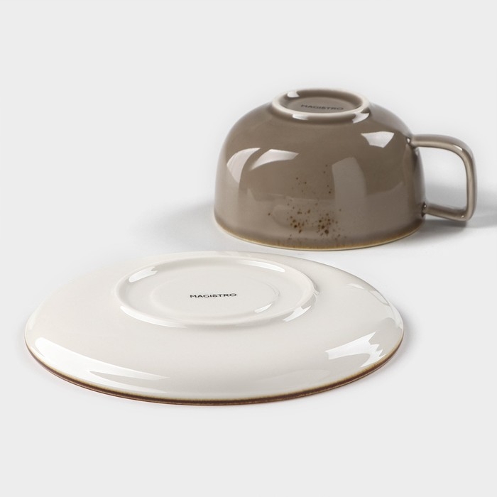 Чайная пара фарфоровая Magistro «Церера», 2 предмета: чашка 250 мл, блюдце d=16,3 см, цвет коричневый