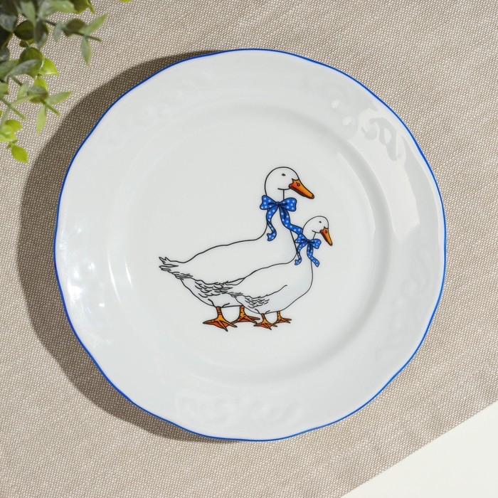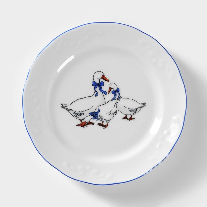 Тарелка фарфоровая «Гуси», d=17,5 см, МИКС