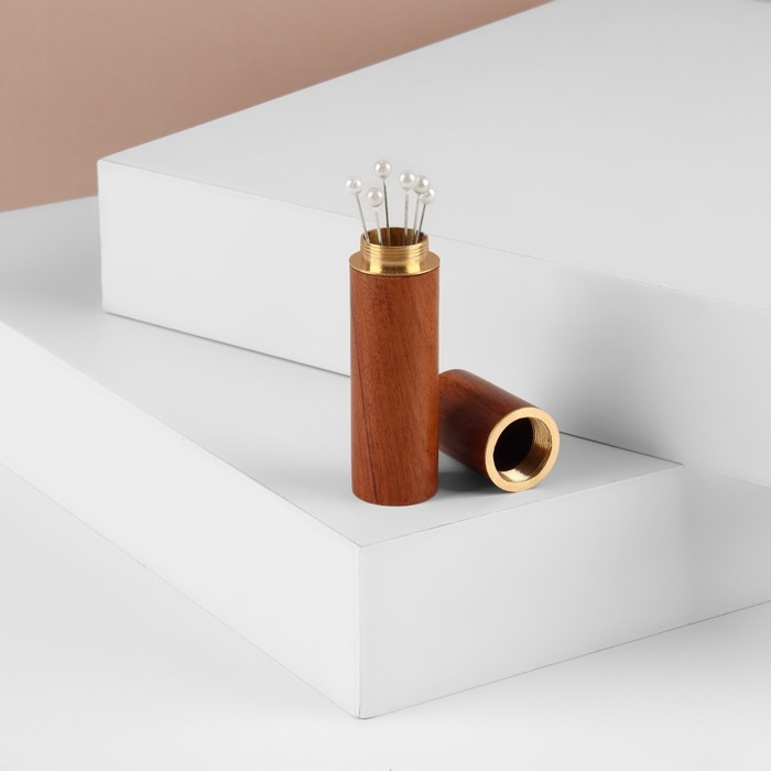 Деревянный футляр пригодится для хранения и транспортировки иголок и булавок. Крышка игольницы надёжно закручивается — ваши острые помощницы всегда будут в безопасности. Компактное изделие можно оставить на рабочем столе или положить в сумку.