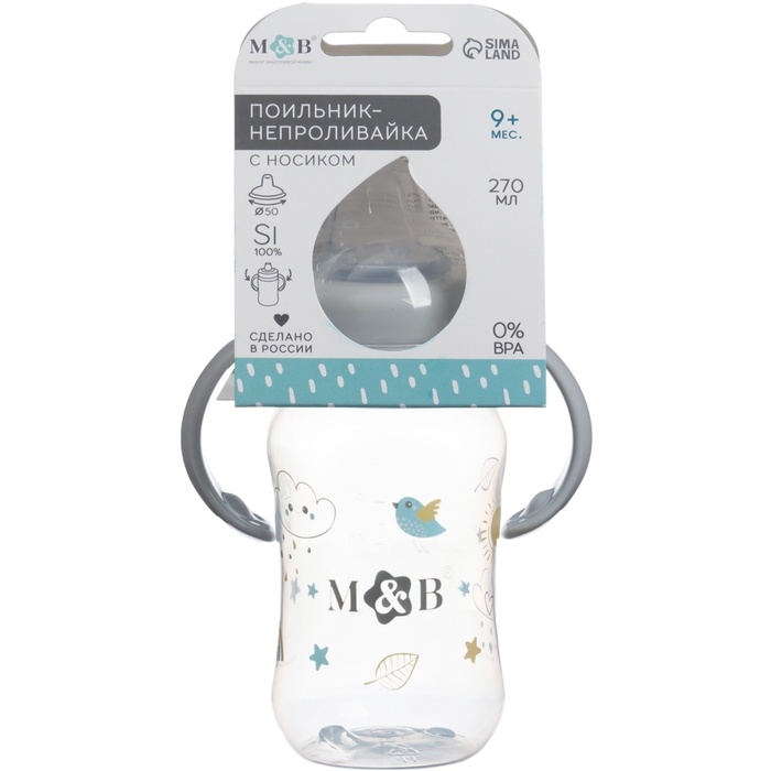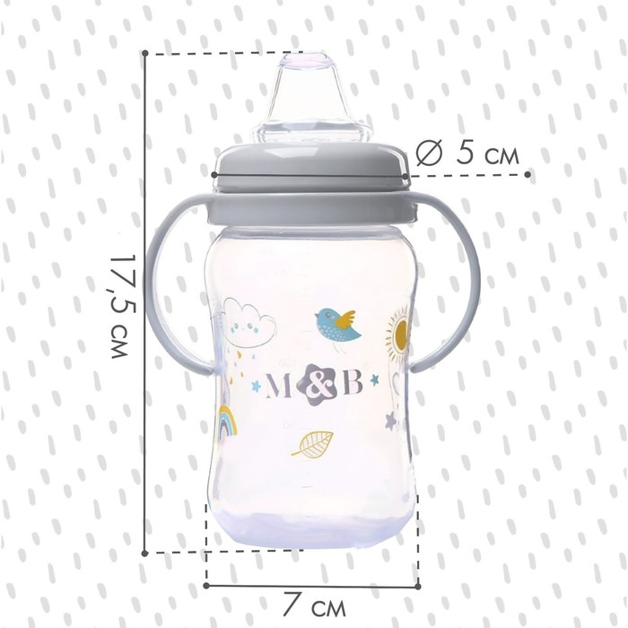 Поильник - непроливайка детский с мягким носиком «M&B», 270 мл., с ручками, цвет серый