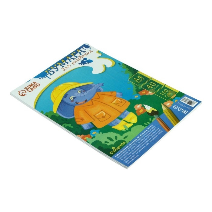 Формат бумаги А4, 40 листов в упаковке (термоусадочная пленка) и яркий вкладыш внутри. Качественная бумага повышенной плотности позволит творить практически любыми принадлежностями для рисования.