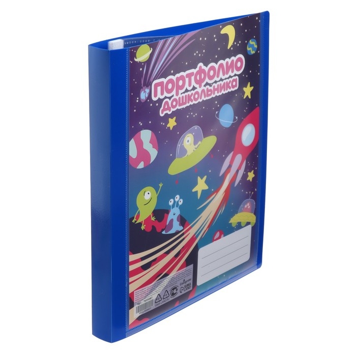 Папка-портфолио А4, Calligrata "Космические друзья", пластиковая, на 2 кольцах, для дошкольника, 10 файлов