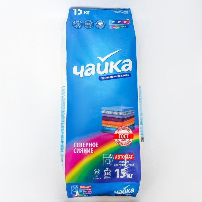 Стиральный порошок Чайка, "Северное сияние", автомат, для стирки цветного белья, 15 кг