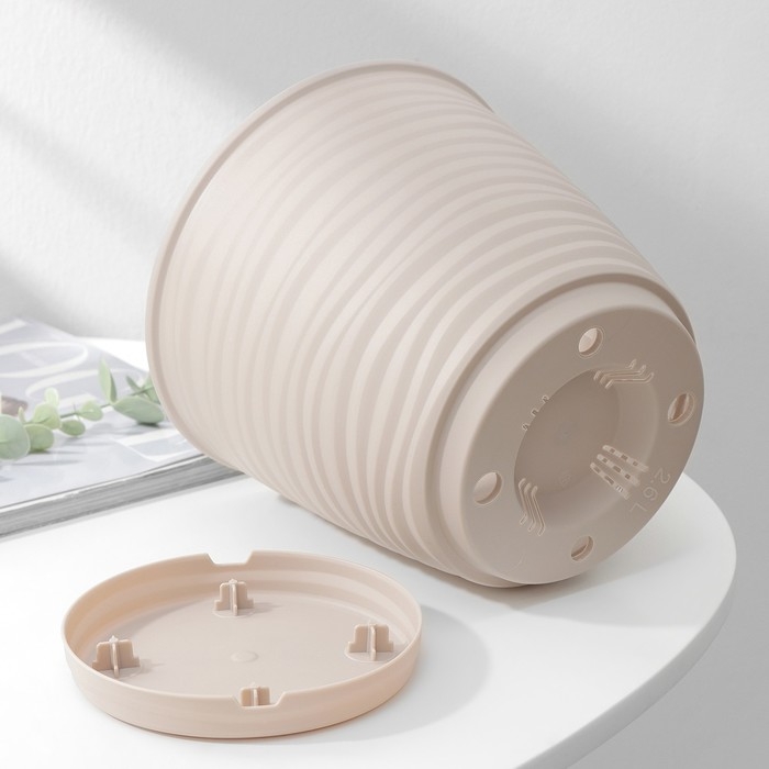 Горшок для цветов с поддоном Saffron, 2,6 л, d=17,6 см, h=16,2 см, пластиковый, цвет бежевый