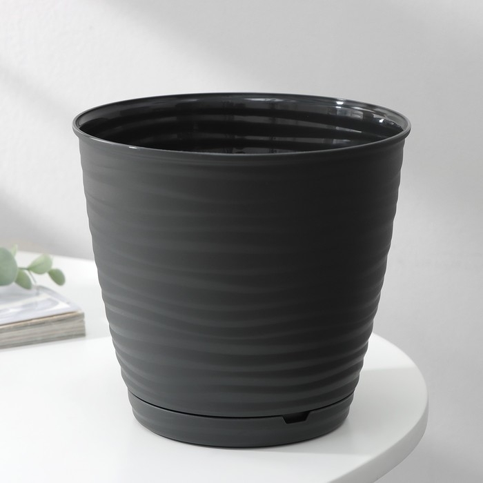 Горшок для цветов с поддоном Saffron, 1,5 л, d=14,6 см, h=13,5 см, пластиковый, цвет чёрный