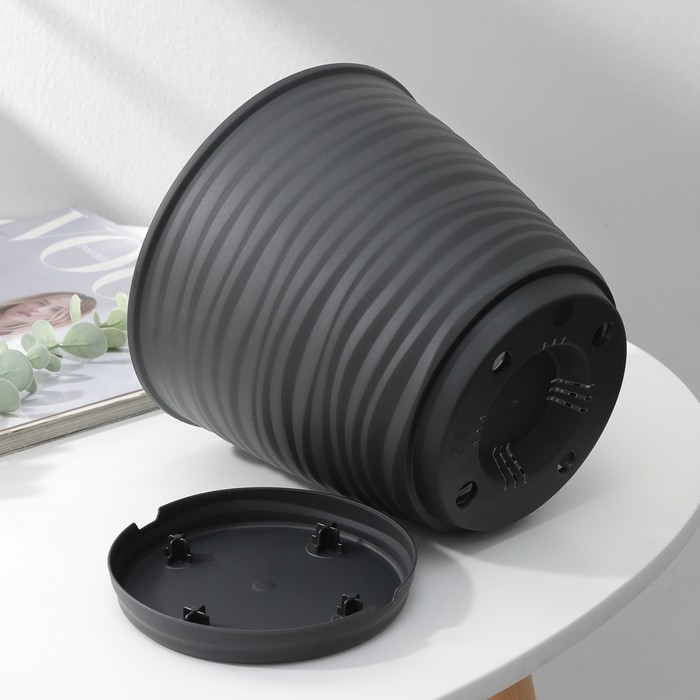 Горшок для цветов с поддоном Saffron, 2,6 л, d=17,6 см, h=16,2 см, пластиковый, цвет чёрный
