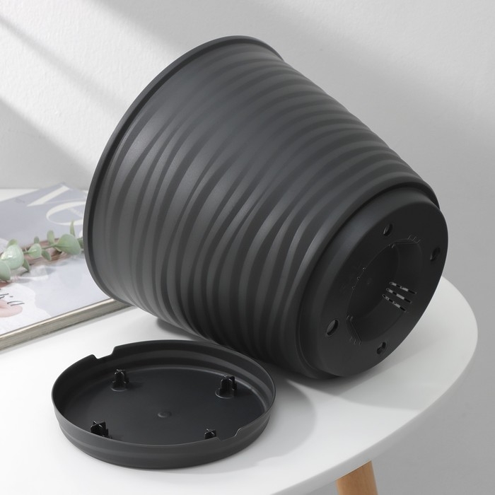 Горшок для цветов с поддоном Saffron, 5,4 л, d=22,4 см, h=20,5 см, пластиковый, цвет чёрный