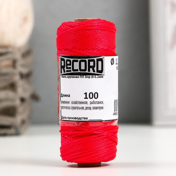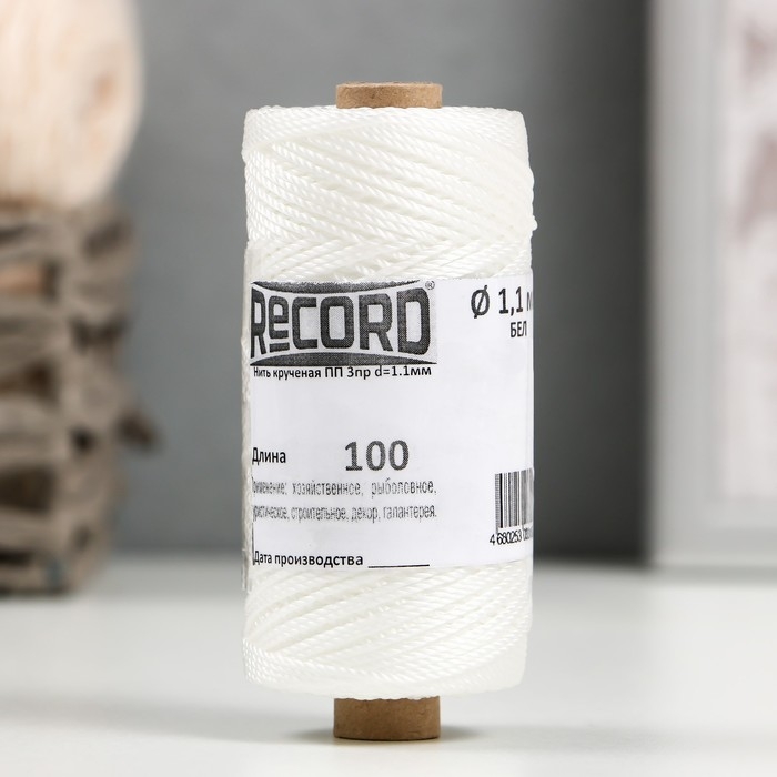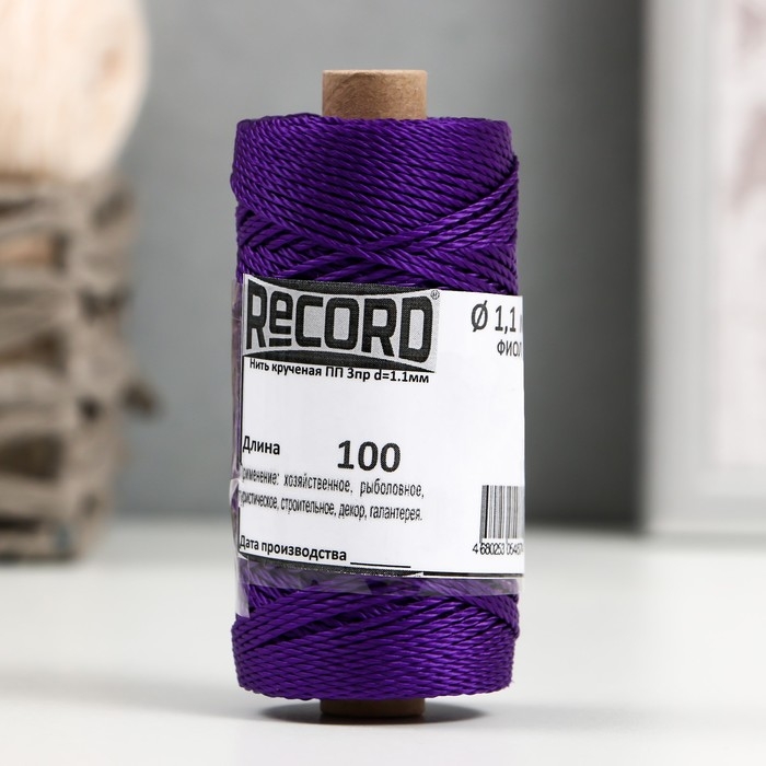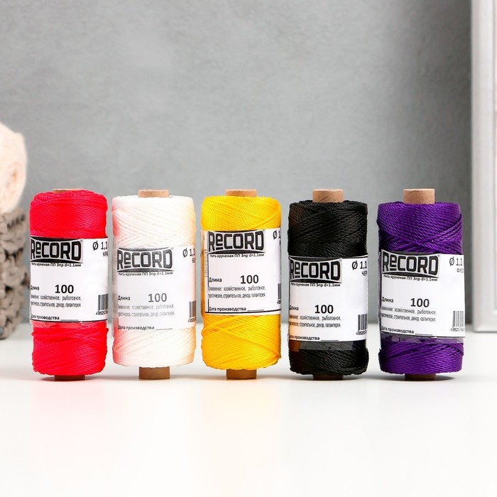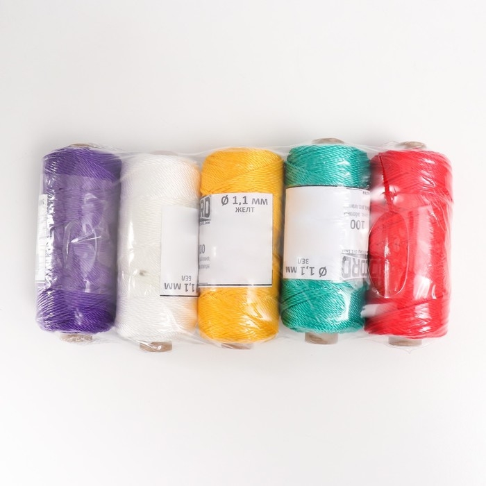 Нить кручёная ПП 3пр d=1,1 мм 100 м (крас.,белый, жел.,черн.,фиол.,набор 5 шт)