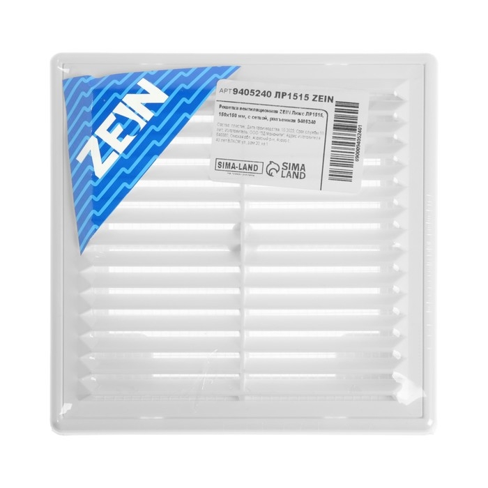 Решетка вентиляционная ZEIN Люкс ЛР1515, 150 x 150 мм, с сеткой, разъемная