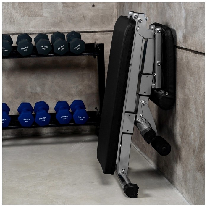 Благодаря складному механизму скамью можно разместить в кладовке или на балконе.