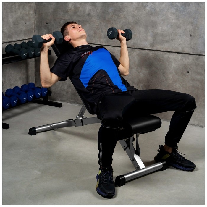 Рама скамьи изготовлена из стального профиля, сиденье и спинка покрыты нескользящим материалом с надёжной обивкой. За счёт этого вам будет комфортно и безопасно выполнять упражнения.