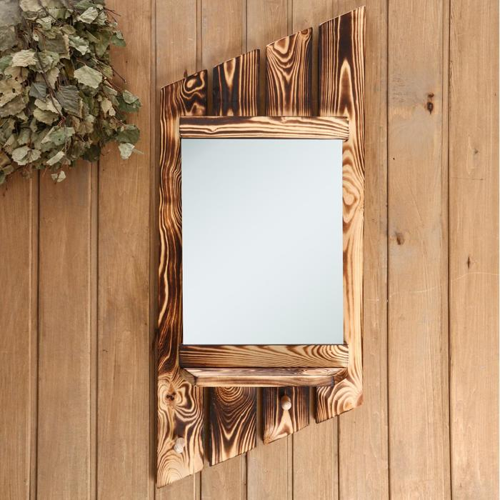Зеркало резное с полкой, обожжённое, 53×53×1,6 см
