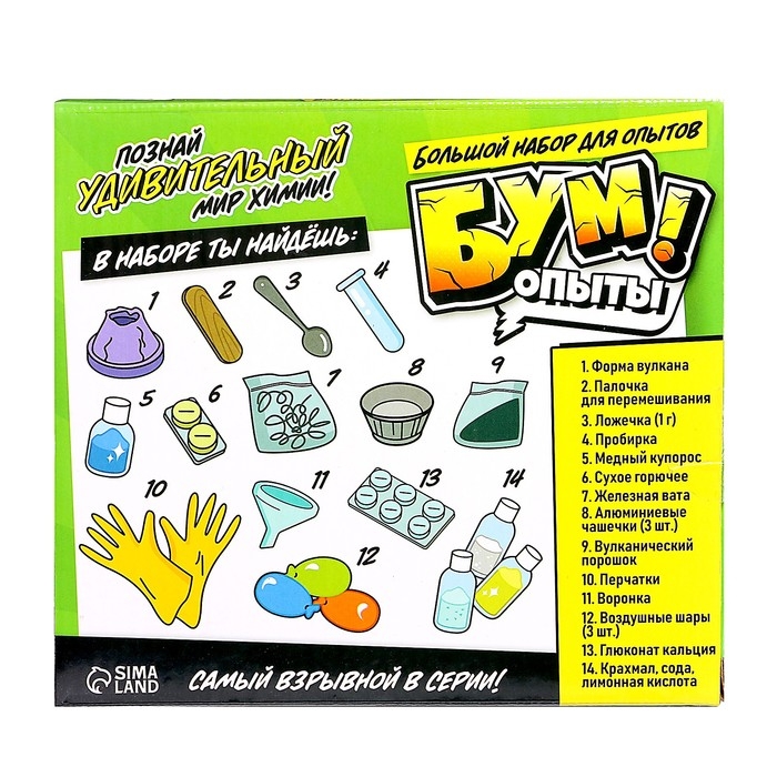 - Набор включает всё необходимое для проведения 9 увлекательных и познавательных экспериментов.