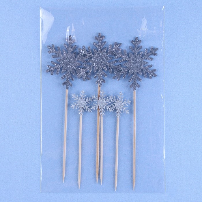 Набор шпажек и топперов «Снежинки», 2 размера, в наборе 6 шт.