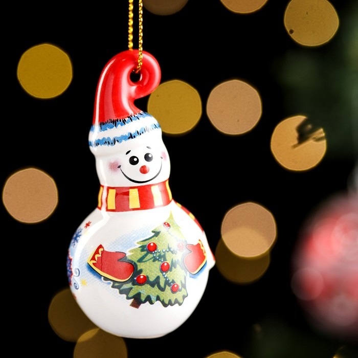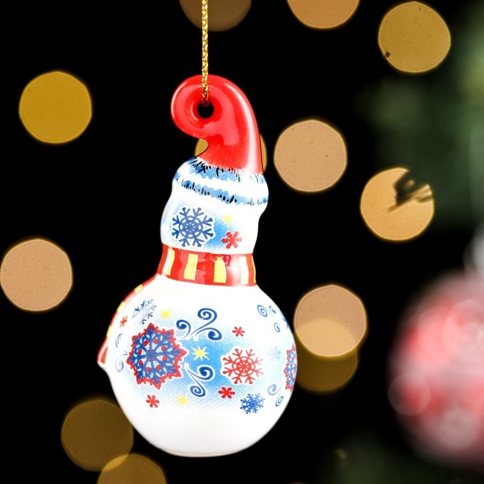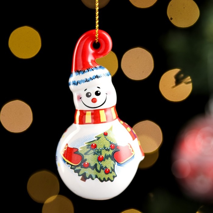 Ёлочная игрушка "Снеговик", 6см, керамика