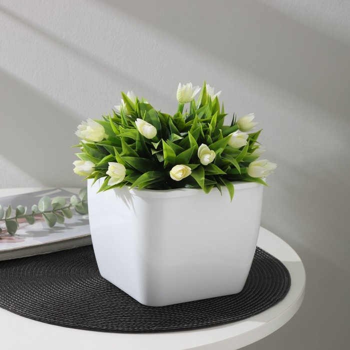 Кашпо для цветов со вставкой «Глянец», 2,4 л (1,6 л), цвет белый