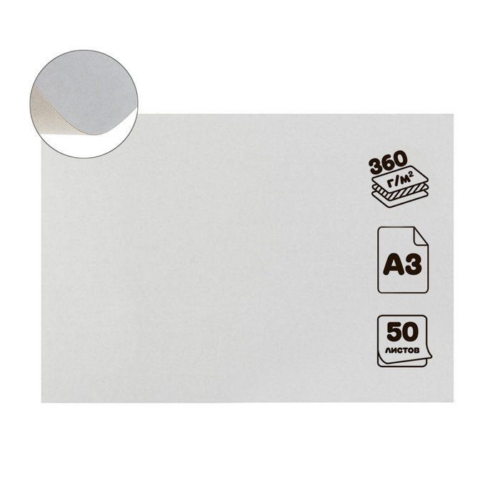 Картон хром-эрзац А3 (30х42см), 50 листов, 360 г/м2, "Ладога" немелованный, 0.5мм