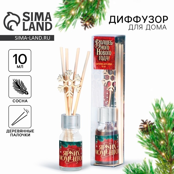Новый год! Диффузор ароматический палочки «Новогодняя коллекция: Ярких моментов», сосна, 10 мл - для дома, кабинета и офиса. Ароматные палочки и диффузоры являются современным модным элементом интерьера. Ароматический диффузор создаёт комфорт и притягательную ауру в помещении.