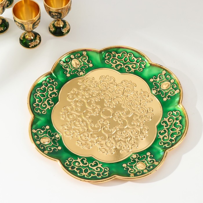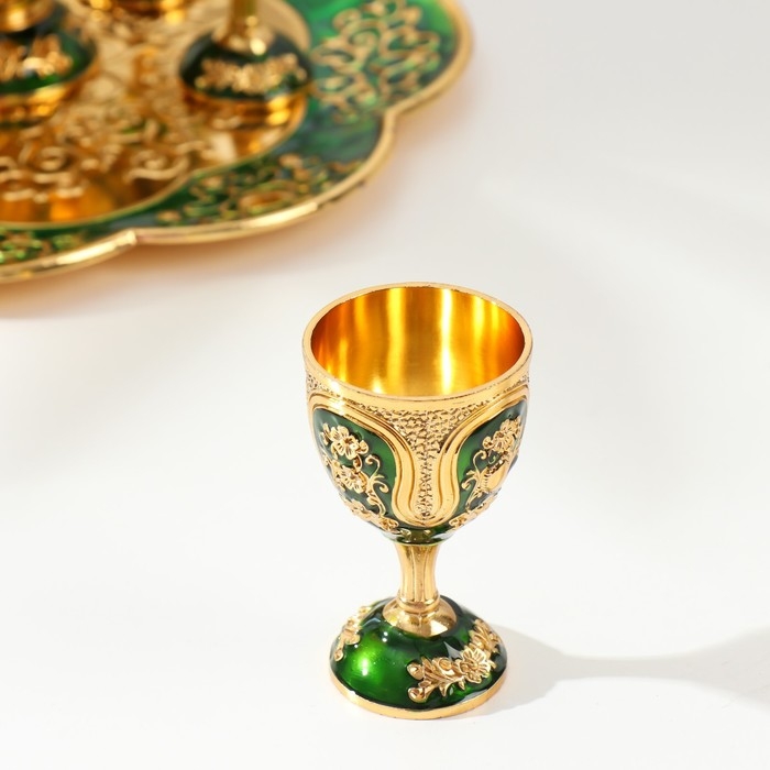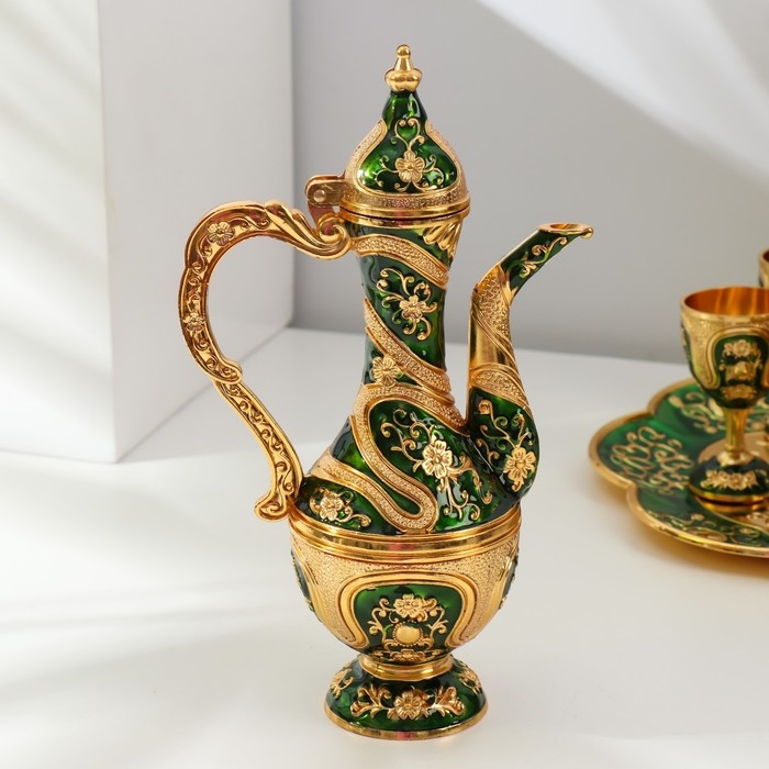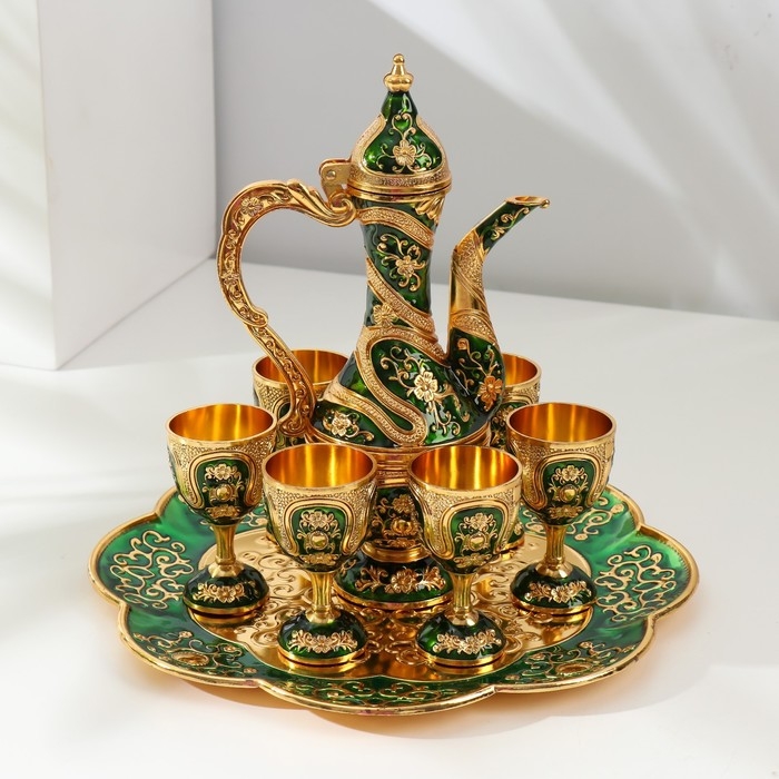 Набор винный кувшин, 6 бокалов и поднос "Турция. Цветы и узоры" зелёный с золотом