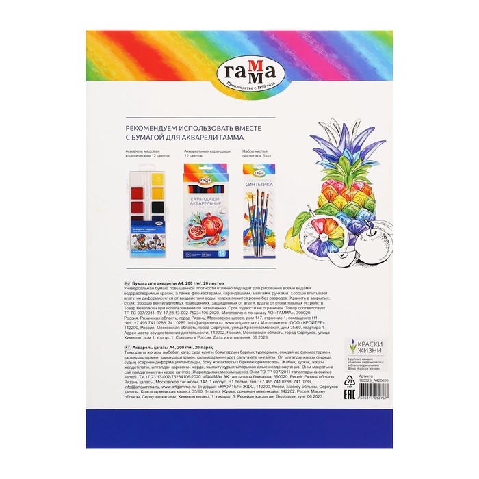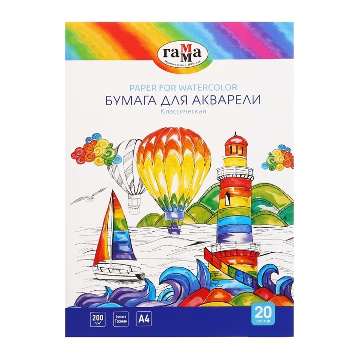 Акварельная бумага ГАММА серии "Классическая" состоящая из 20 листов плотностью 200 г/м2 отлично походит для рисования всеми видами водорастворимых красок, а также фломастерами и карандашами, мелками, ручками.