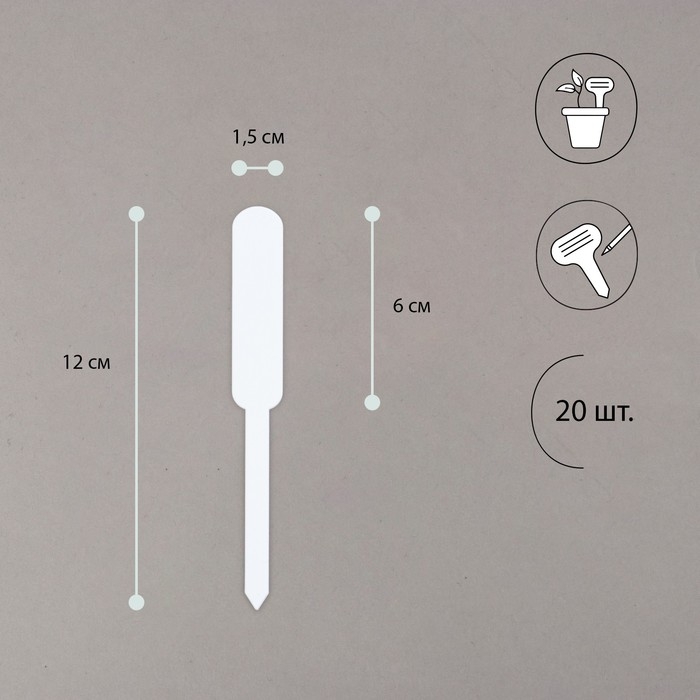 Таблички садовые для маркировки, 15 см, с карандашом, набор 20 шт., пластик