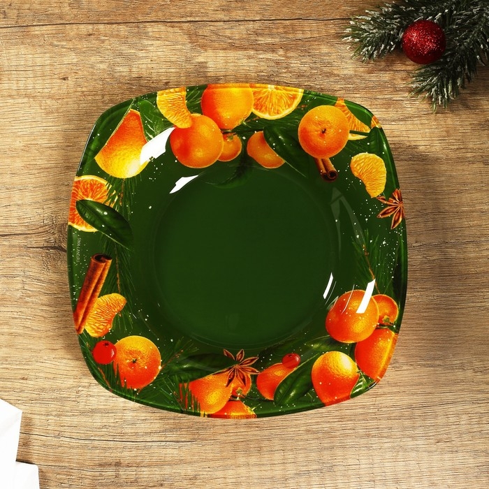 Новый год. Тарелка стеклянная «Апельсины», 20 см