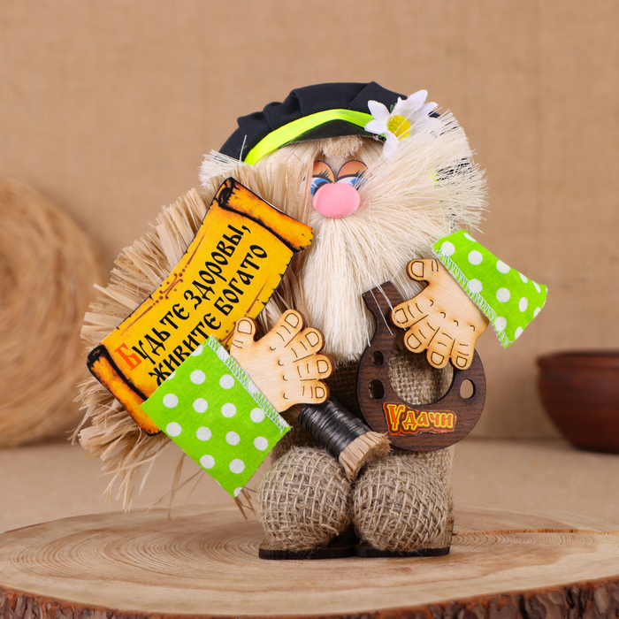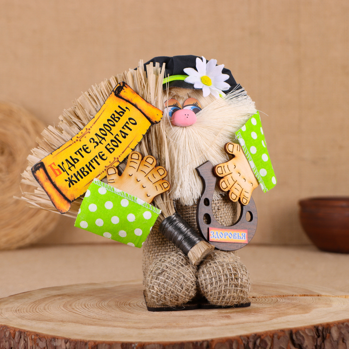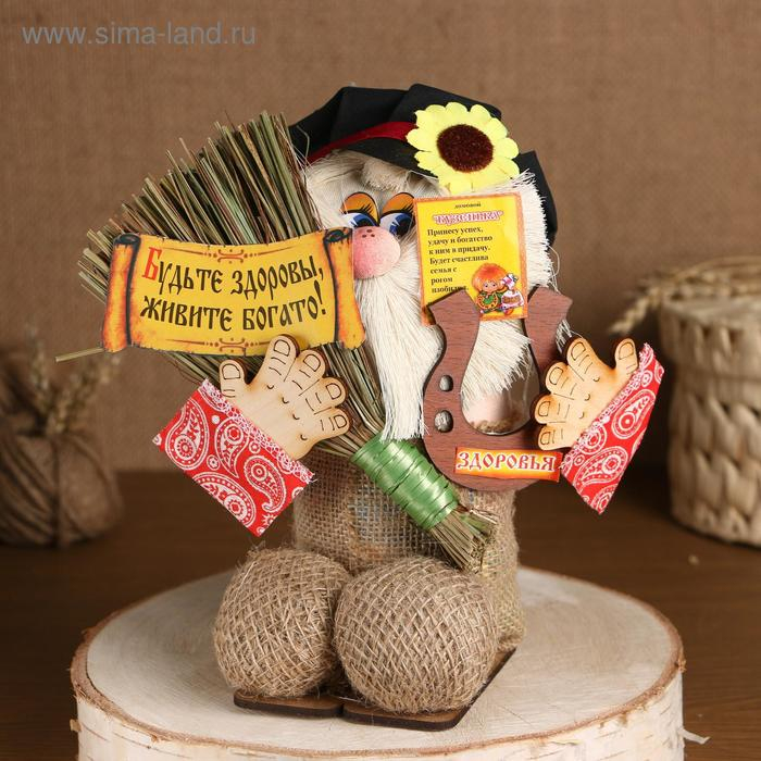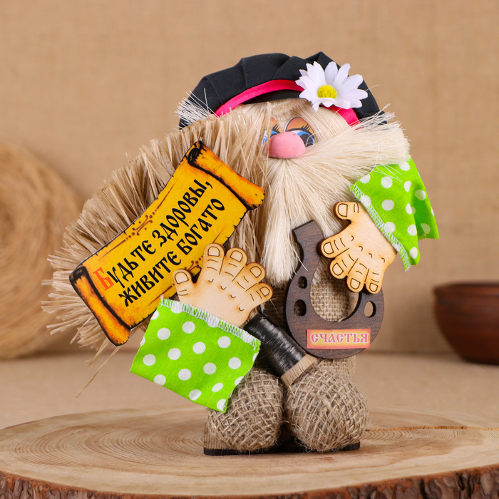 Оберег-домовой "Кузя в кепке, с метлой и подковой", 23х25х13 см МИКС