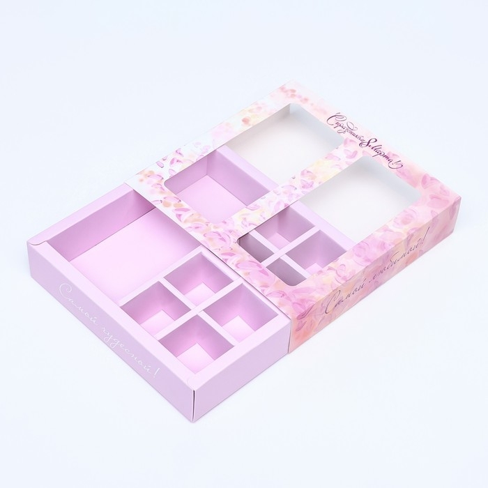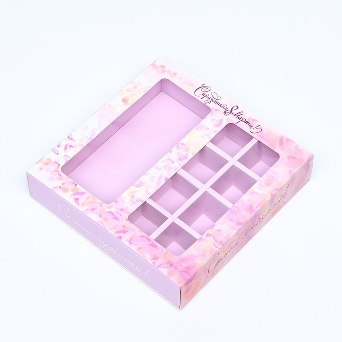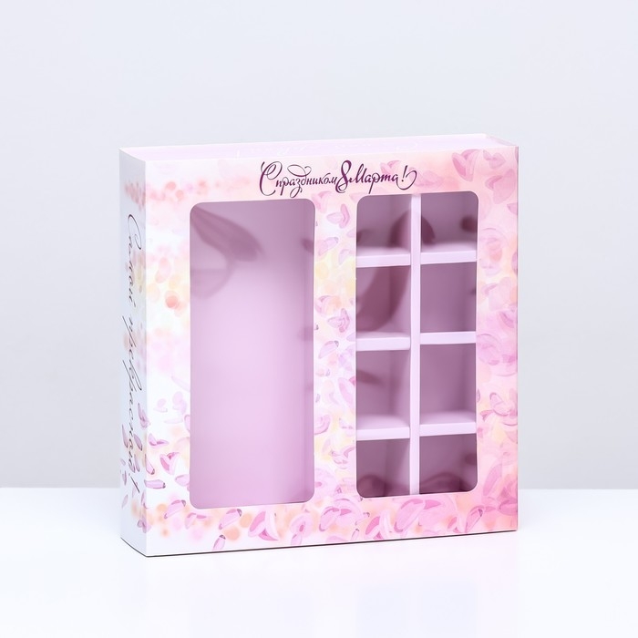 Коробка для 8 конфет + шоколад, с окном , "Самой прекрасной" 17,7 х 17,8 х 3,8 см. Кондитерская упаковка