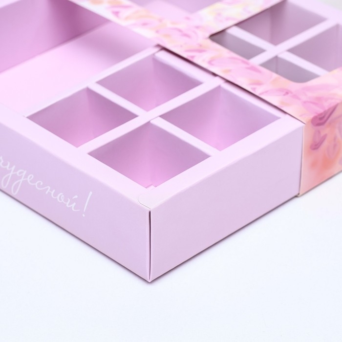 Коробка для конфет, кондитерская упаковка, 9 ячеек, «Нежность внутри», 14.7 х 14.7 х 3.5 см