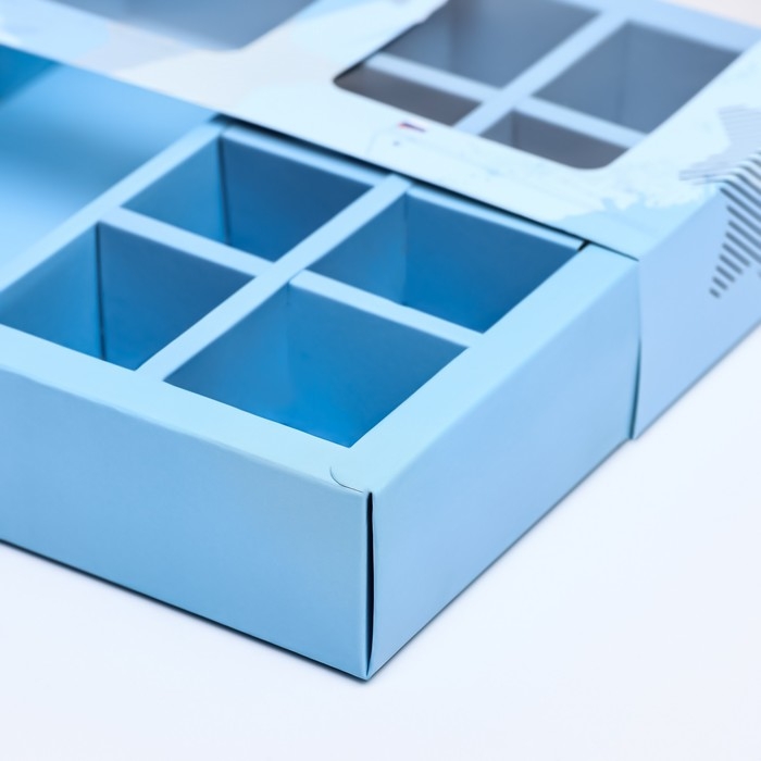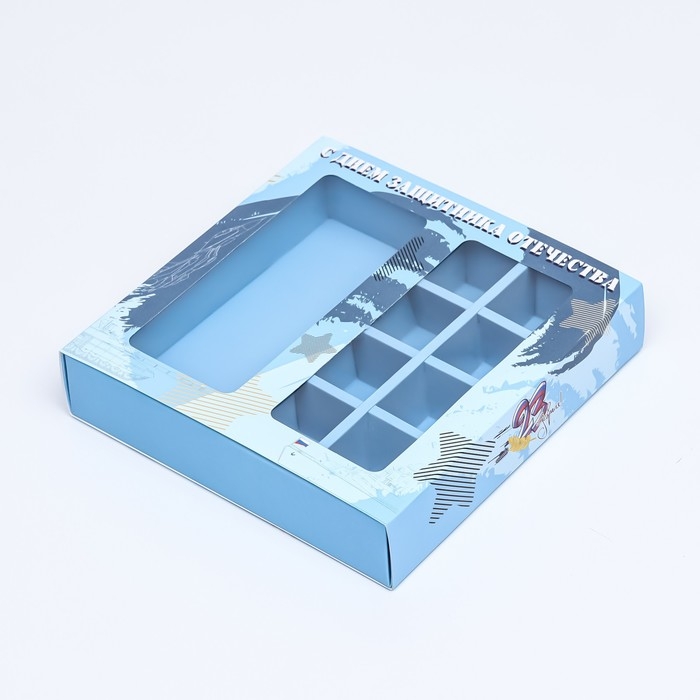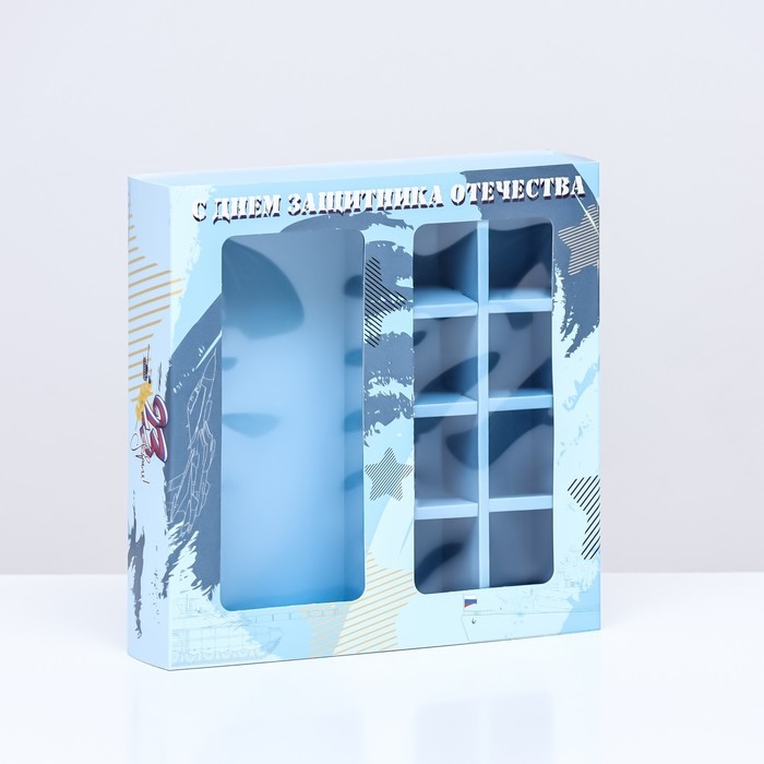 Коробка для 8 конфет + шоколад, с окном , "23 Февраля" 17,7 х 17,8 х 3,8 см. Кондитерская упаковка