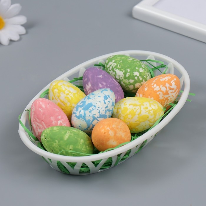 Декор пасхальный "Яйца с кружевом в гнездышке" набор 9 шт 3,5х12х18 см