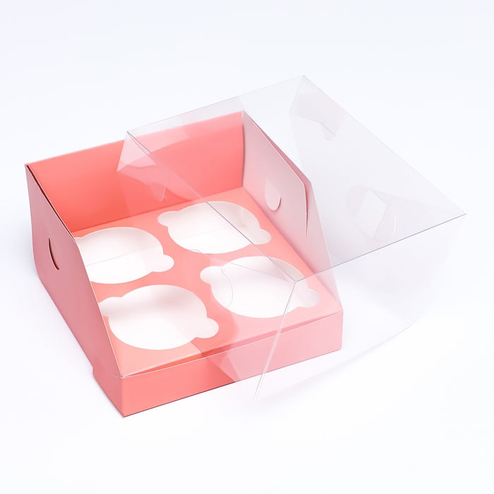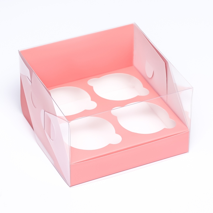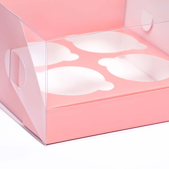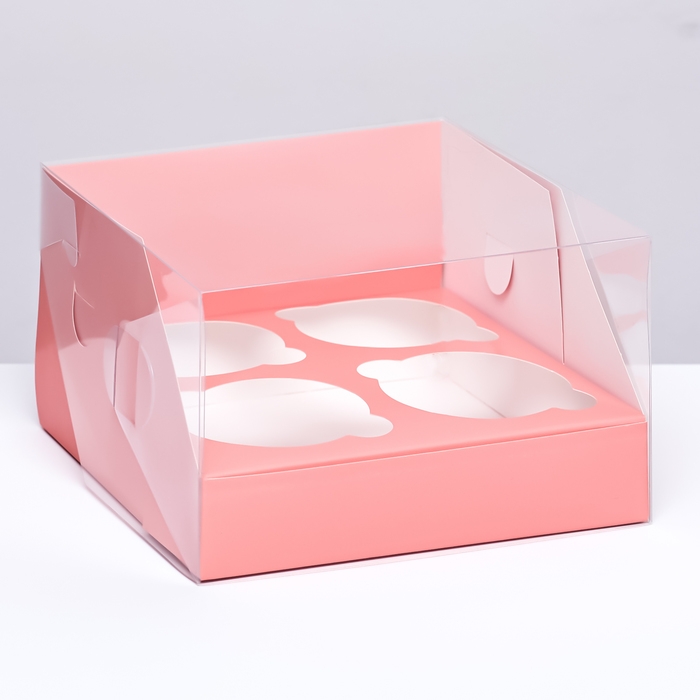 Коробка для 4 капкейков 16 х 16 х 10 , Розовая, кондитерская упаковка