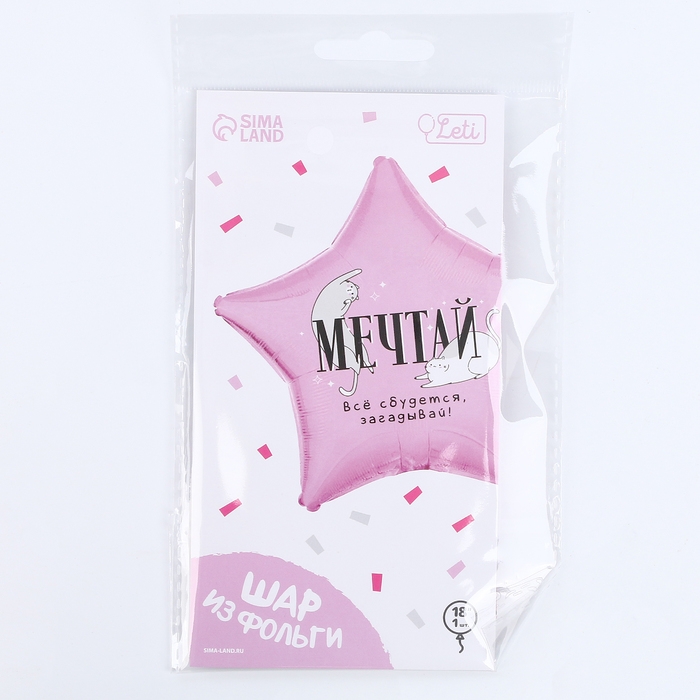 Воздушный шар фольгированный 18"«Мечтай», звезда, с подложкой