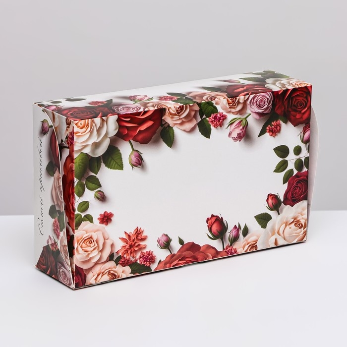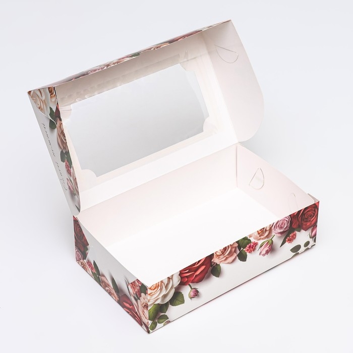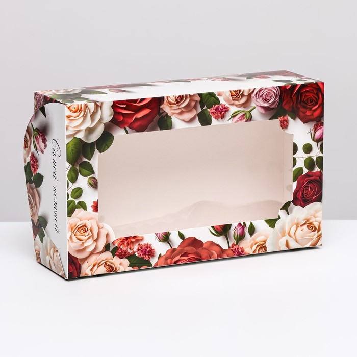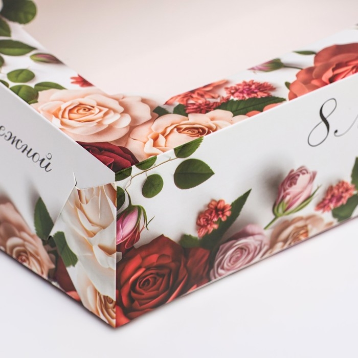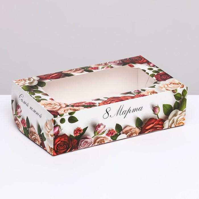 Коробка складная с окном под зефир "8 марта, розы", 25 х 15 х 7 см