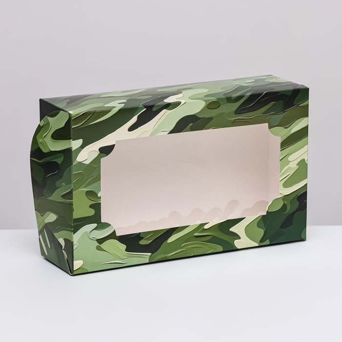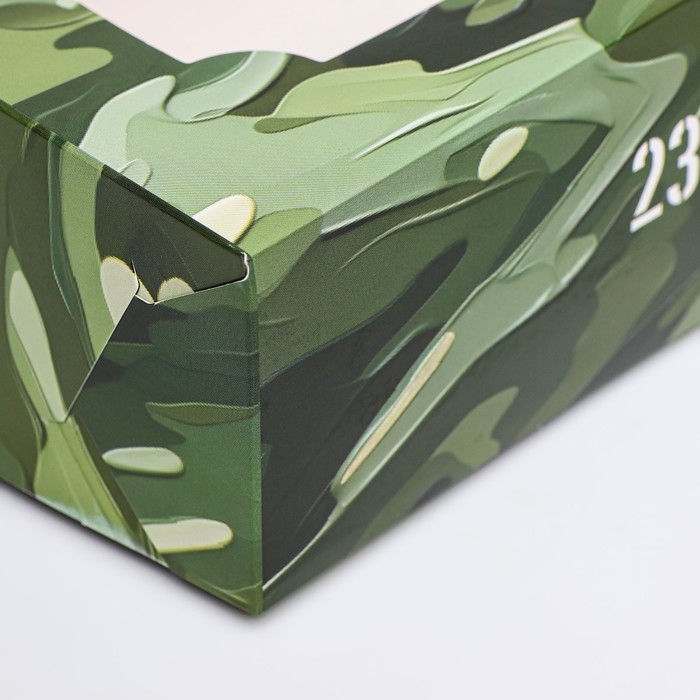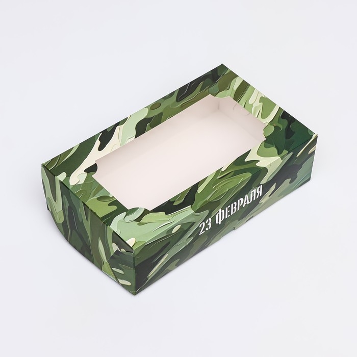 Коробка складная с окном под зефир "С 23 февраля", 25 х 15 х 7 см