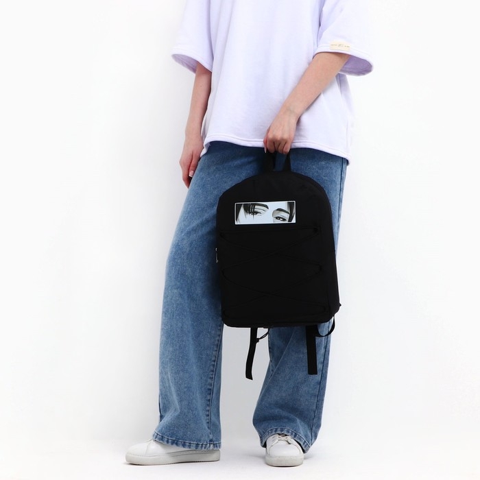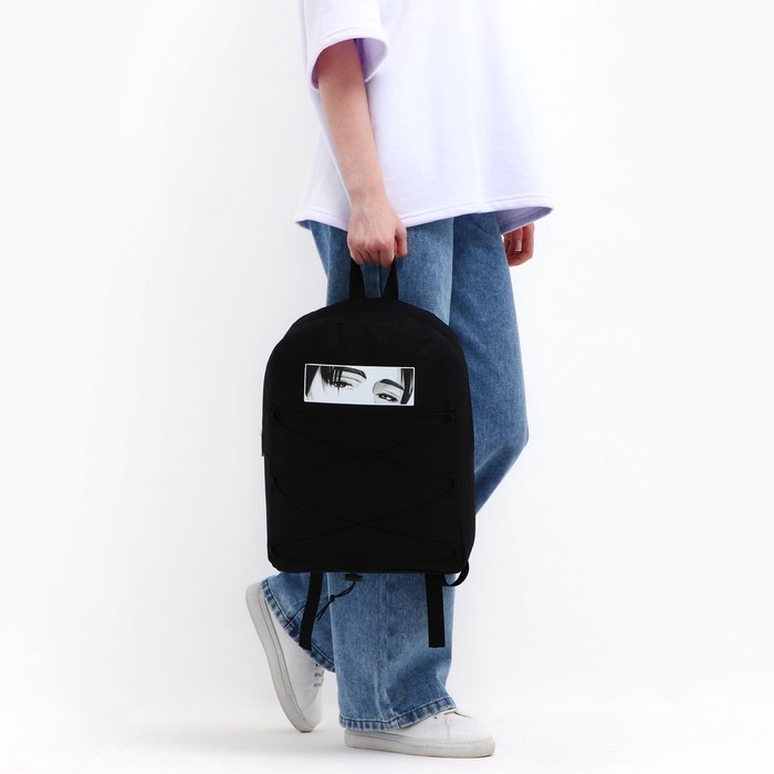 Рюкзак школьный текстильный со шнуровкой Аниме, 38х29х11 см, чёрный
