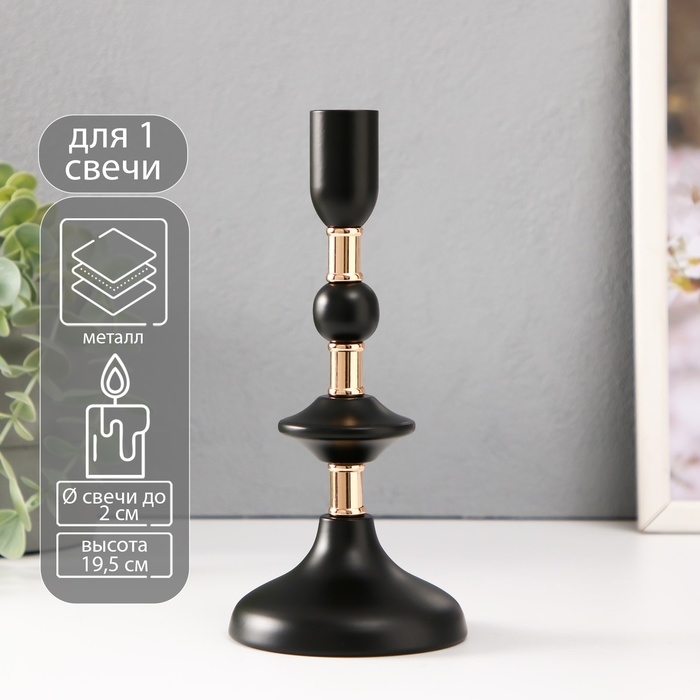 Подсвечник металл на 1 свечу d=2 см "Ирада" с золотом 9х9х19,5 см