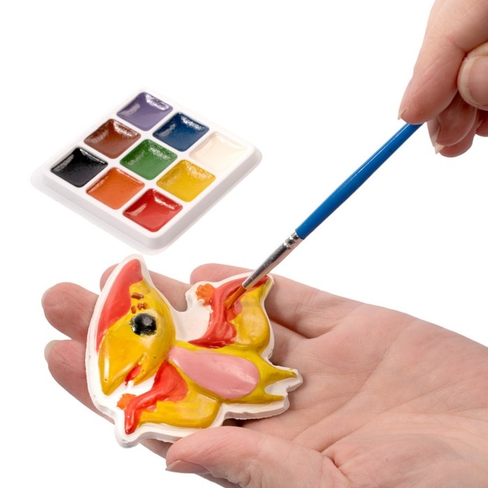 - Раскраска объёмных деталей на готовой гипсовой фигуре отлично разовьёт мелкую моторику рук ребёнка и восприятие цвета.
