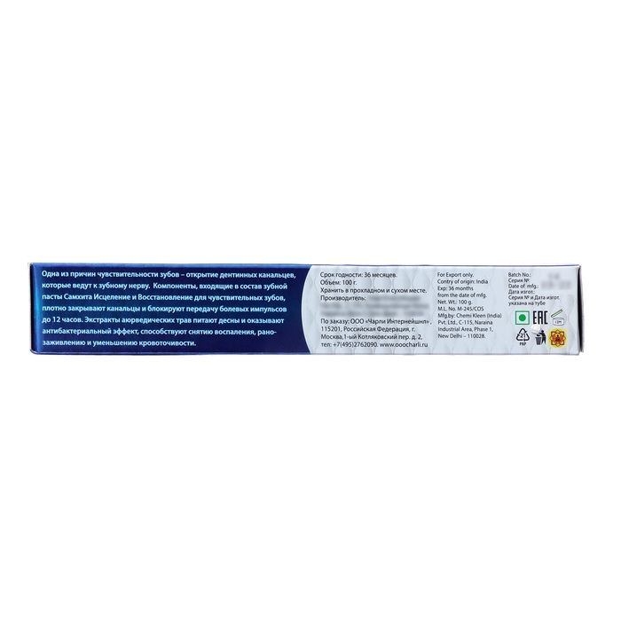 Зубная паста Самхита "Исцеление и Восстановление" - это специальное средство для ухода за полостью рта, которое помогает поддерживать здоровье зубов и десен. Она содержит натуральные экстракты трав, которые обладают противовоспалительным и антибактериальным действием.