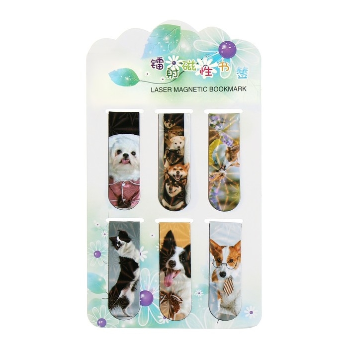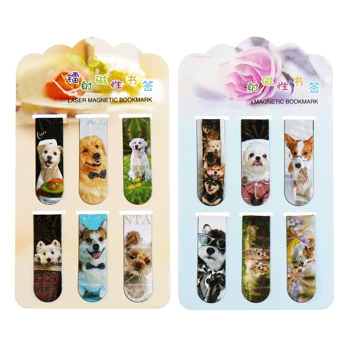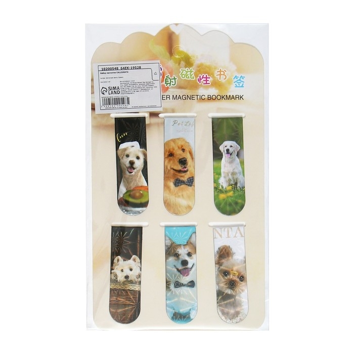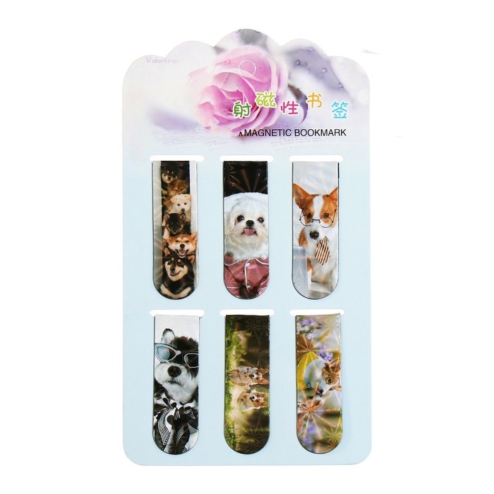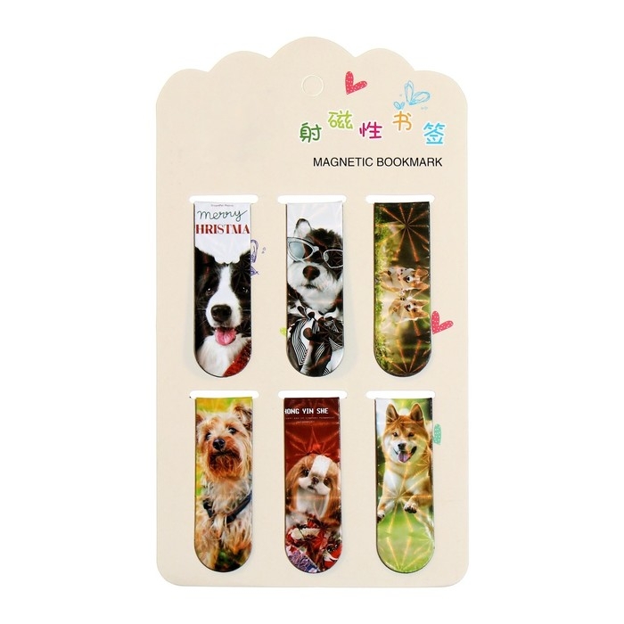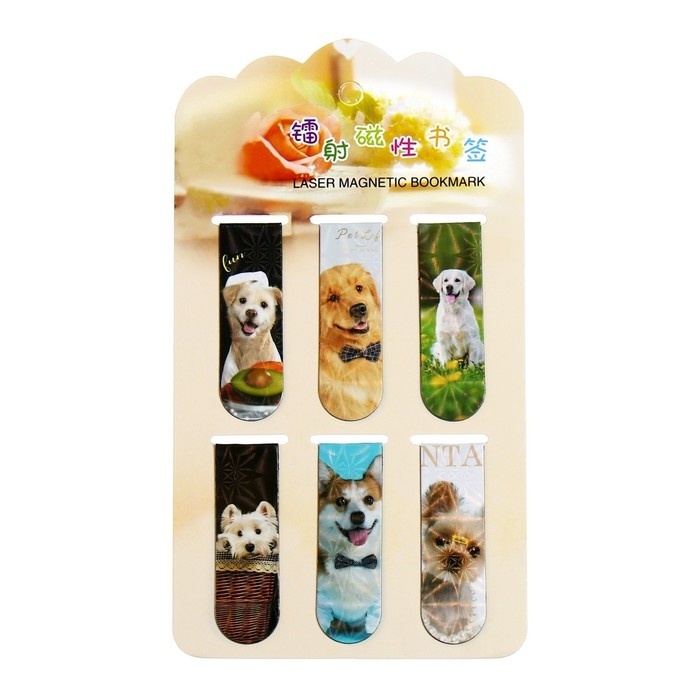 Набор магнитных закладок для книг Calligrata 6 штук, "Собачки", МИКС